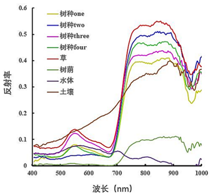 早期对地观测采用多光谱技术,通常配置4-10个波段,各波段宽度达数十纳米,可覆盖可见光至红外范围。然而在面对精细识别需求时,其局限性逐渐显现。例如下图四种乔木在960纳米处的细微光谱差异(约10纳米级差),或是矿物鉴别、作物病害检测、水体富营养化监测等场景,传统多光谱技术难以满足精度要求。