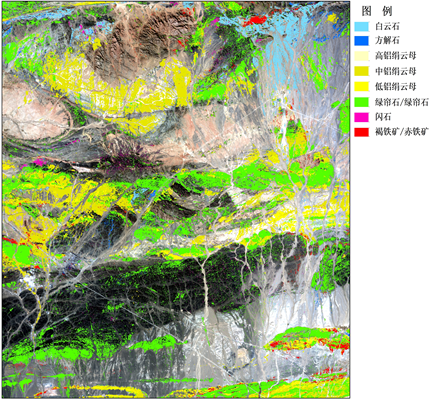 通过矿物光谱特征匹配技术,革新地质勘探作业模式。高光谱遥感技术可以为地质学勘探提供助力,基于获得岩石的光谱曲线分析,可以知道这个地方矿物分布种类以及区域。图为高光谱数据有效地提取了白云石、方解石、绢云母、绿帘石等矿物信息。