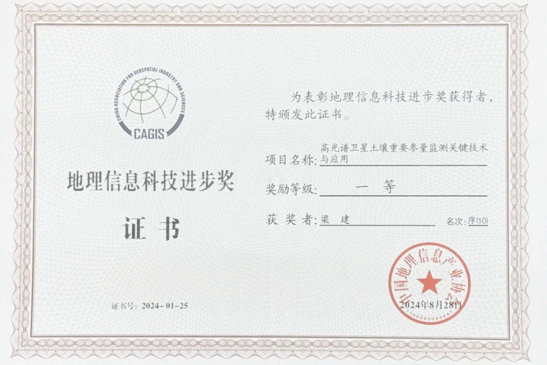 JIST的母公司,南通长三角智能感知研究院作为星载大气辐射校正仪研制、辐射与光谱定标、高光谱图像质量提升等任务主要承担单位,出色完成了高分五号、资源02D等高光谱卫星星载高光谱数据处理生产相关过程中的攻关和研发工作,为我国黑土地高光谱遥感监测等工作作出了重要贡献。同时,我院梁建也是该重大奖项的主要完成人之一。