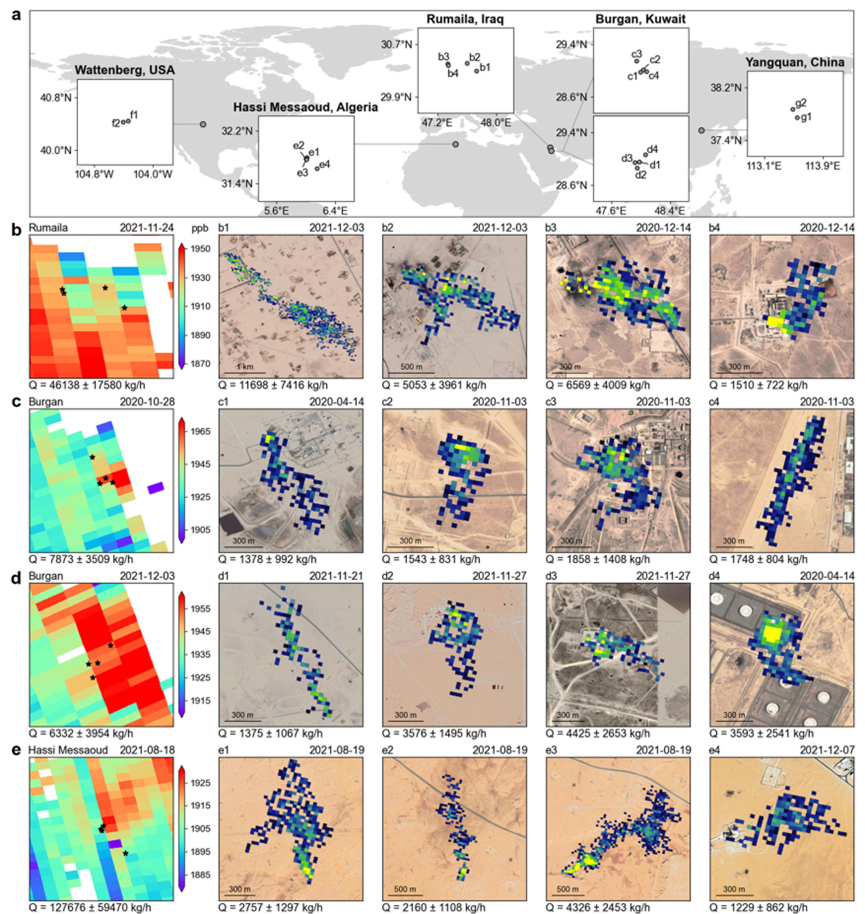 美国、北非、中东地区的甲烷排放的卫星监测