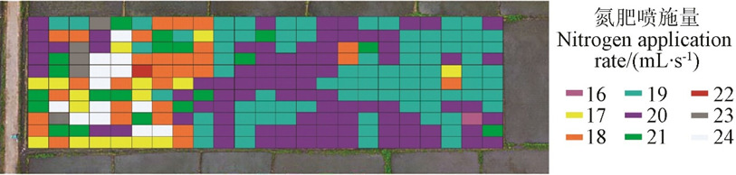 结合无人机喷幅(4 m)和速度(5 m/s),将田块划分为20 m²的栅格,根据缺氮量、生物量、覆盖度等参数计算每个栅格的施肥量。