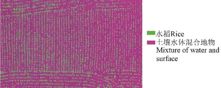 采用最小噪声分离(MNF)、纯净像元指数(PPI)和正交子空间投影(OSP)技术,分离水稻、水体及土壤混合光谱,提取纯净水稻光谱信息。
