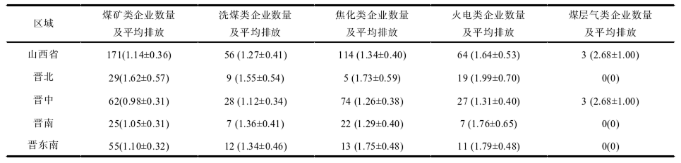 企业(3家)。这与山西省丰富煤炭资源的相一致。但 是,本研究检测出的煤层气类企业数量较少,可能是 因为有些煤层气企业是大型煤矿集团的子公司或分 支机构,或者是在开采煤矿的同时抽取煤层气,这些 情况下的煤层气开采设施可能被归入煤矿类企业。