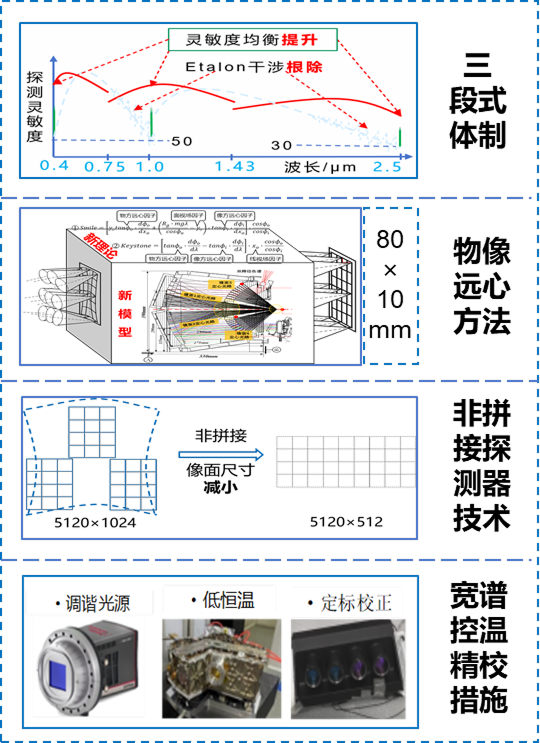 攻克星载“高分-高光谱-高效-高质量”数据获取关键技术,创建“星空地井”全链路高光谱成像体系. 相机体制采用“三段式” ,根除Etalon干涉、灵敏度失衡问题,为商业卫星奠定基础。