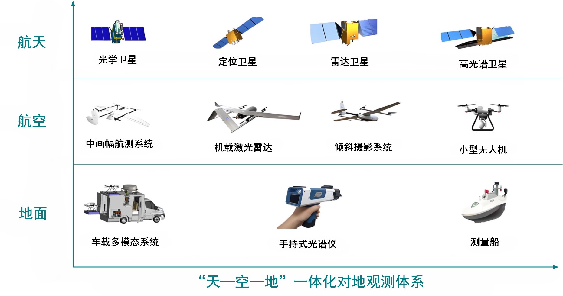 “天空地一体化”高光谱遥感是指将卫星遥感、无人机遥感、地面观测等多种技术手段相结合,形成多元化、立体化的监测体系,实现对地表环境的全方位、多角度、高精度的监测。